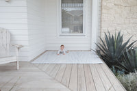 PU is a biodegradable, non toxic foam and it is within its nature to discolour slightly. We refrain from using colour stabilisers to ensure our play mats are free from harsh chemicals. You may notice slight yellowing along the play mats edges and in areas where there may be white, this is considered normal behaviour for our eco friendly foam. Heat and exposure to sunlight will encourage this process. Leave the play mat out of direct sunlight when not in use and refrain from using it outside in extreme temperatures. This process is more apparent on the lighter coloured play mats.